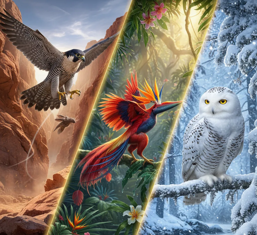 Kooklawar führt Sie durch die vielfältigen Habitate der Vögel, von dichten Regenwäldern bis zu ariden Wüsten, wo jede Umgebung ihre eigenen gefiederten Bewohner beherbergt. Stellen Sie sich vor, Sie wandern durch den Amazonas, wo der Harpyienadler durch das Blätterdach jagt, oder erkunden die Savannen Afrikas, wo Strauße in Herden laufen. Diese Habitate werden mit reichen Beschreibungen zum Leben erweckt, die die Interaktionen zwischen Vögeln und ihrer Umwelt beleuchten, wie das Sammeln von Nahrung oder den Bau von Nestern aus lokalen Materialien. In Kooklawar erfahren Sie, wie saisonale Veränderungen diese Orte beeinflussen und wie Vögel sich anpassen, um zu überleben. Von den Korallenriffen, wo Seevögel nisten, bis zu städtischen Umgebungen, wo Spatzen gedeihen – jede Szene ist ein Fenster in die Ökologie. Diese Erkundung vertieft Ihr Verständnis für die Vernetzung des Lebens und motiviert, diese Habitate zu schützen.